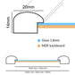 Deze kader is gemaakt van een profiel dat 20mm breed en 14mm hoog is. De bovenzijde van het profiel heeft een ronde curve.