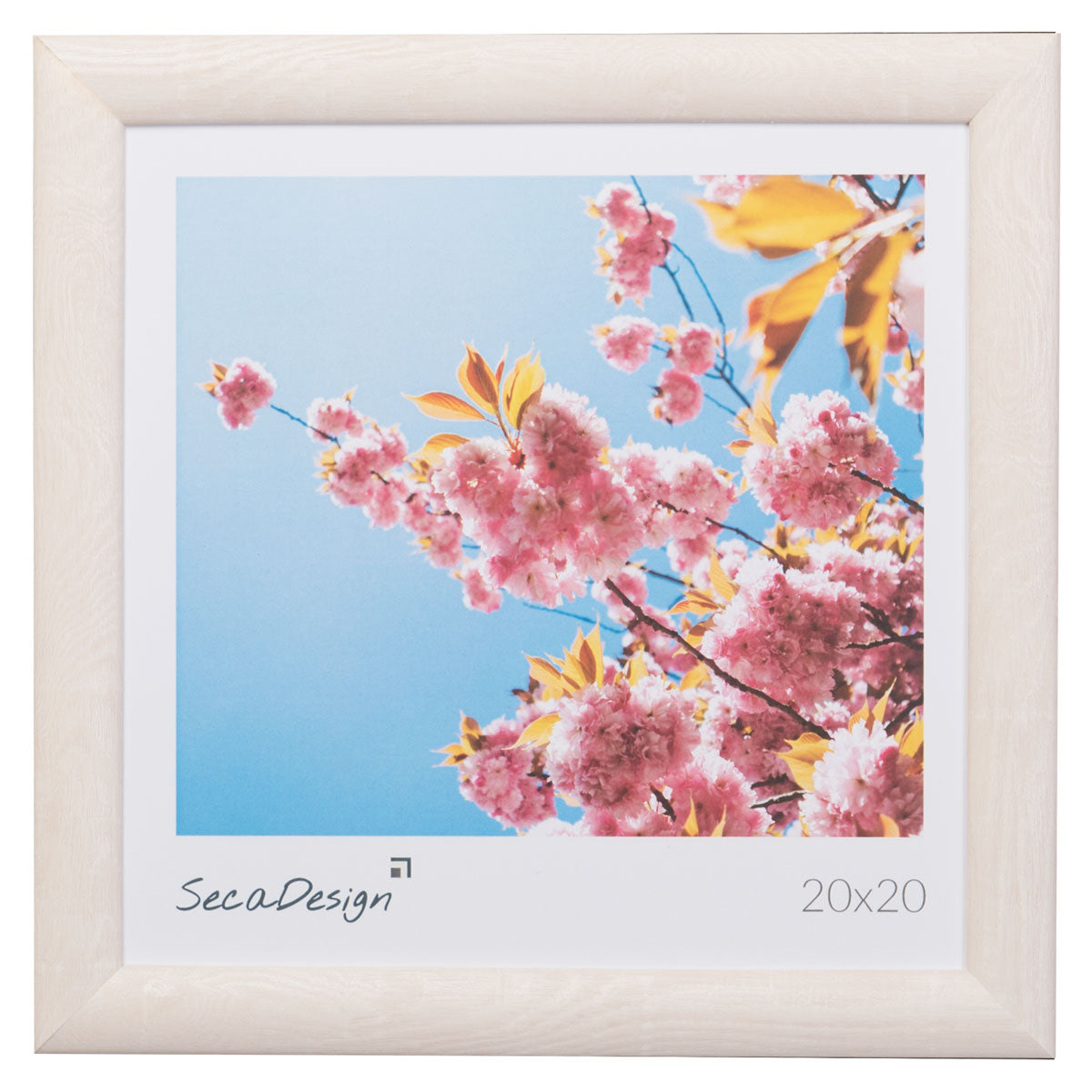 De witte kleur met houtoptiek geeft deze kader een moderne uitstraling.