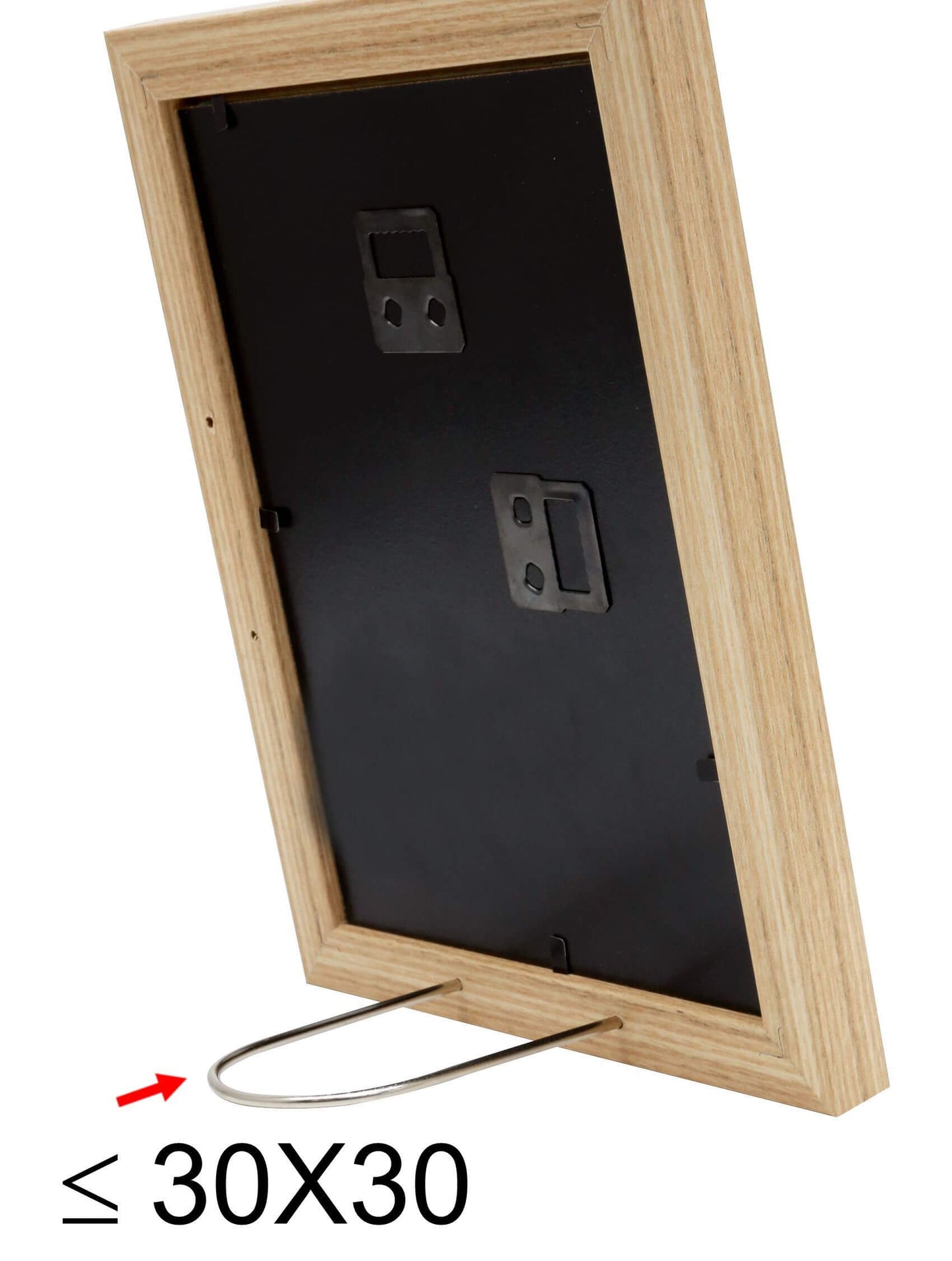 Formaten tot en met 30x30cm zijn voorzien van een staander en de rechthoekige formaten kunnen zowel in horizontale als verticale positie neergezet worden.