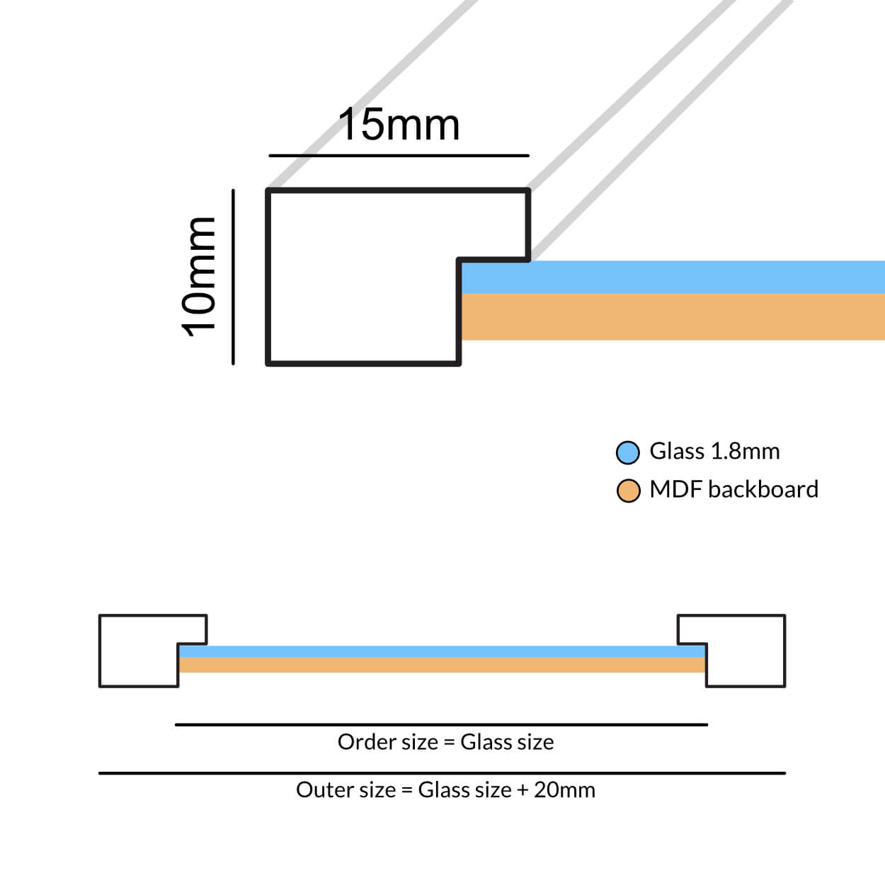 Fotokader Luca is een eenvoudige kunststof fotokader met een profiel dat 15mm breed en 10mm hoog is. Het is een vlak profiel met rechte hoeken.