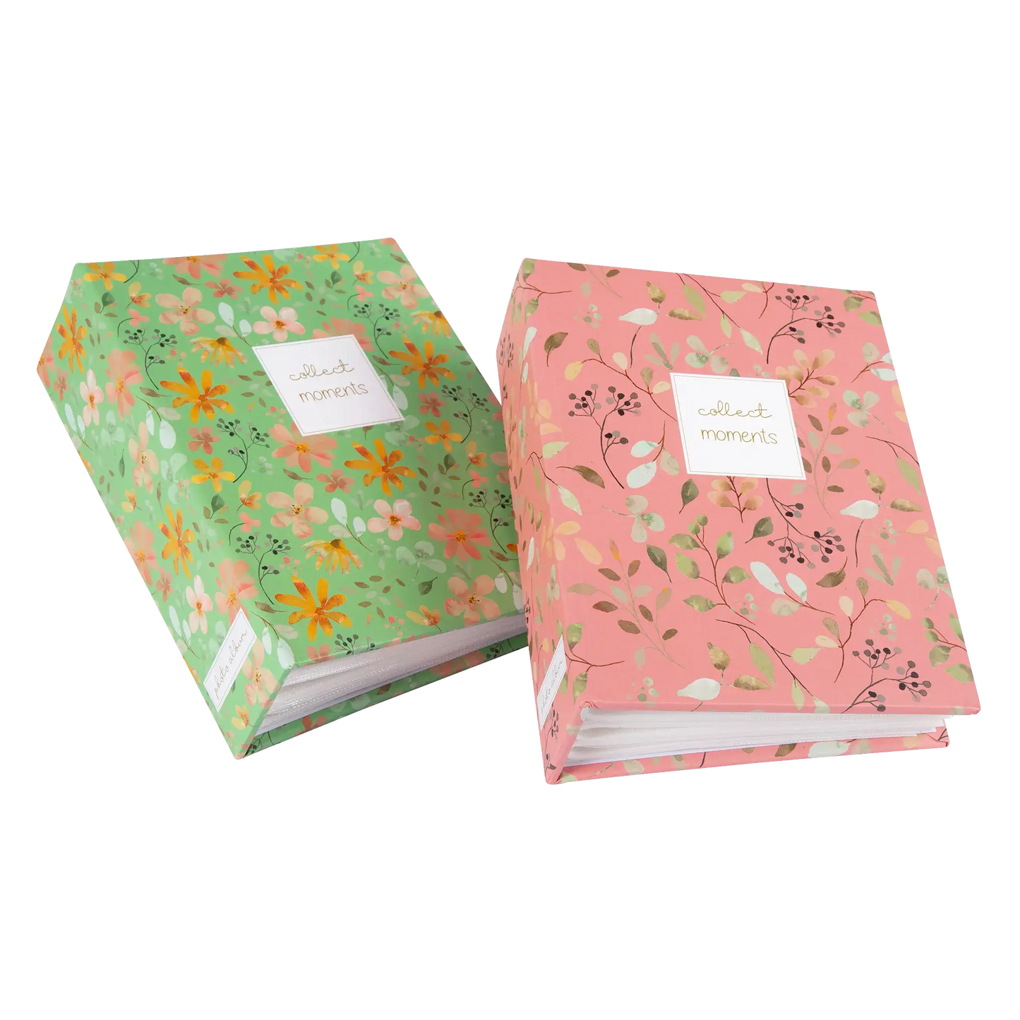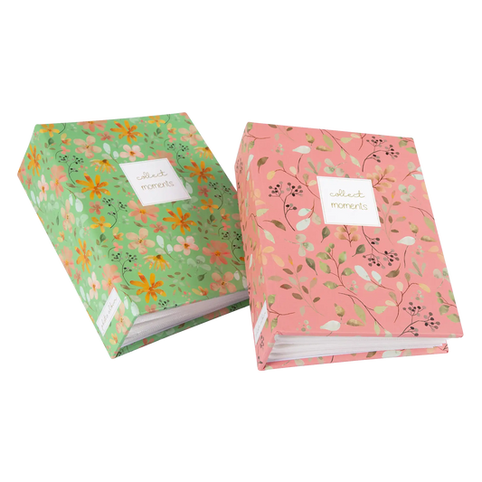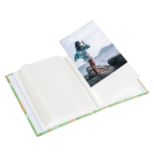 De omslag is versierd met een sierlijk bloemmotief en straalt een tijdloze charme uit. Het album is leverbaar in twee kleurtinten, roze en groen. Dankzij het handige formaat van 13x17 cm is het ideaal om mee te nemen, op te bergen of als een mooi cadeau te geven.