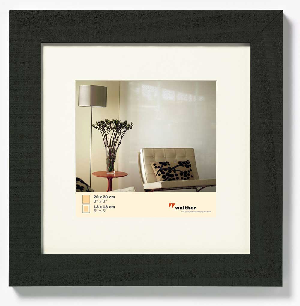 Alle maten zijn zowel horizontaal als verticaal op te hangen en in de maten tot en met 20x20cm is deze fotokader voorzien van een staander. Hierdoor kun je deze zwarte houten fotokader ook neerzetten.