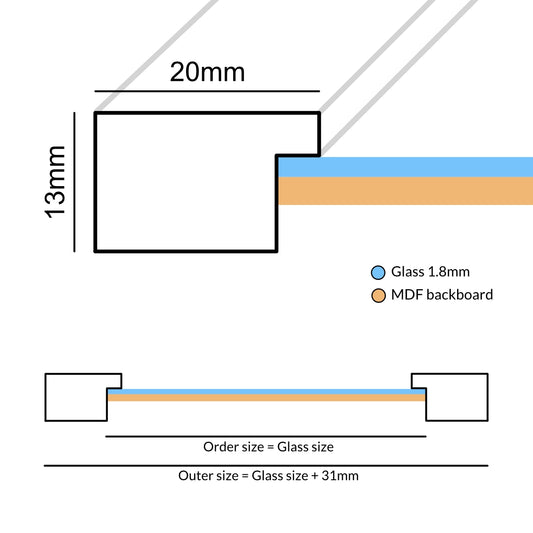 Fotokader Nervi is houten fotokader met een profiel dat 20mm breed en 13mm hoog is. Hiermee is het een gemiddeld breed profiel. De nerfstructuur op dit profiel zorgt voor een natuurlijke uitstraling.