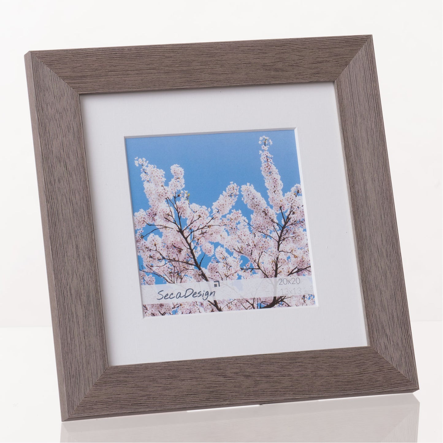 Kunststof fotokader Forest is een grijze fotolijst met houtoptiek. De fotokader is gemaakt van een kunststof staafprofiel met structuur.