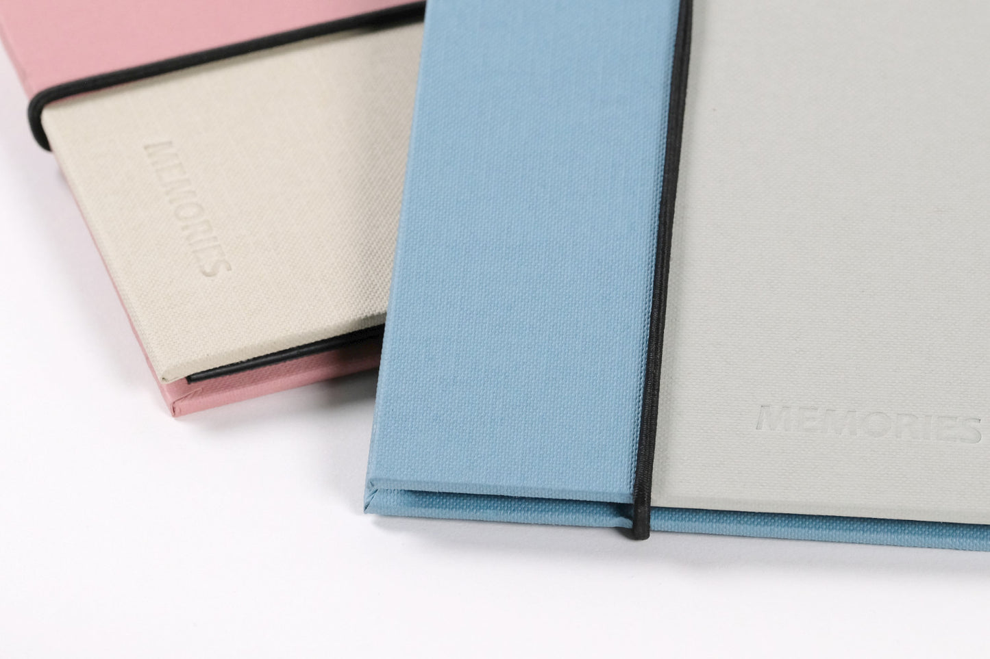 Je plakt de foto’s eenvoudig in het album en kunt het met het elastiek gesloten houden.