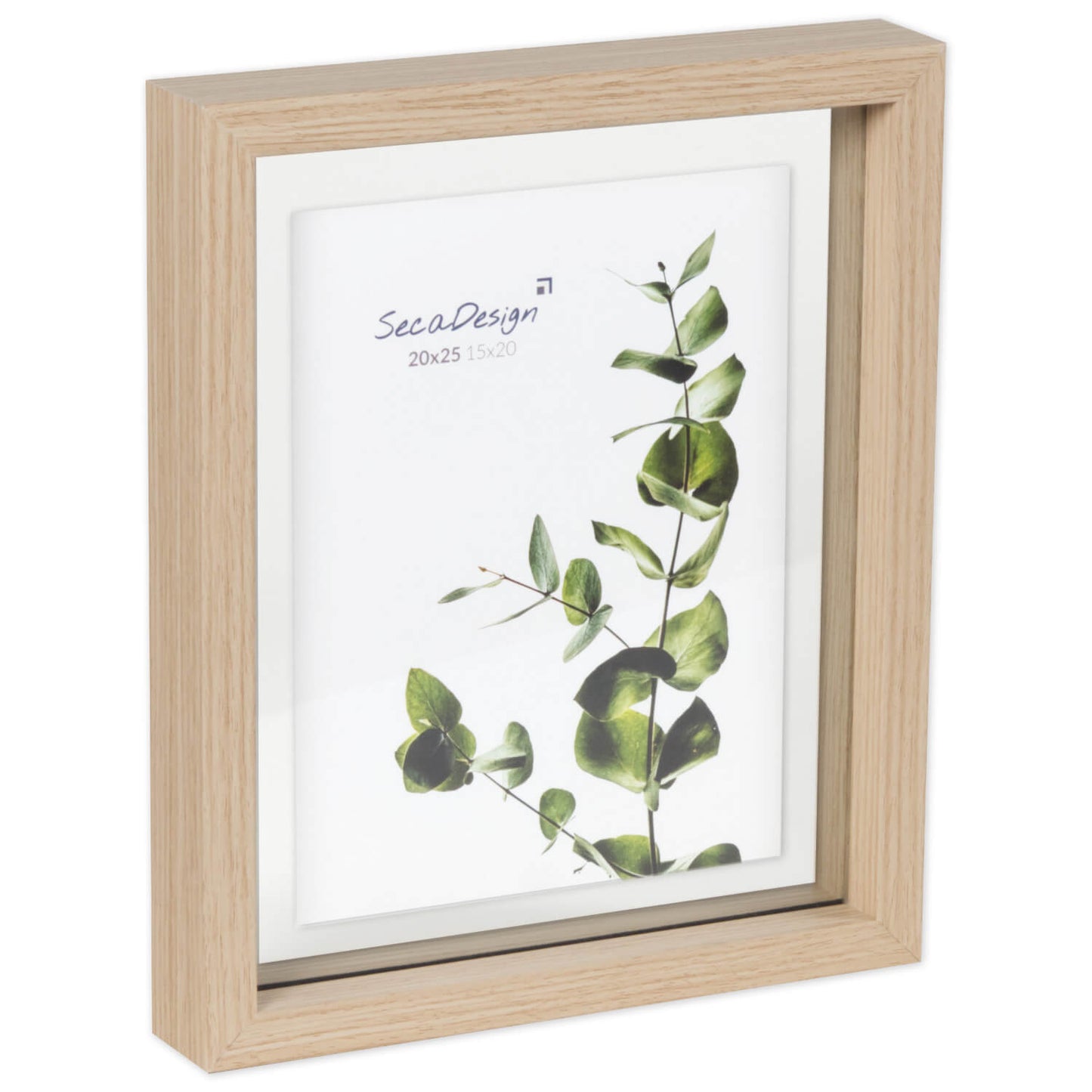 Deze bijzondere fotokader met de naam Flyte van het merk SecaDesign is gemaakt van een houten profiel. De lijst is bedoeld om een foto of object tussen de glasplaten te klemmen en zo een zwevend effect te creëren.